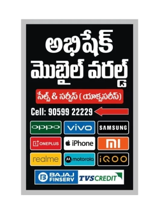 స్థానిక షాపులు సాధారణంగా రిపేర్ సపోర్ట్, ఫోన్ బీజింగ్, సాఫ్ట్వేర్ సమస్యలు, స్క్రీన్/బ్యాటరీ మార్పులు వంటి సేవలు కూడా ఇస్తాయి — ఇది Abhishek Mobile World వంటి షాపులను స్థానికంగా ప్లస్గా కలుస్తుంది (జస్ట్డయల్ లిస్టింగ్ ప్రకారం). (Justdial)