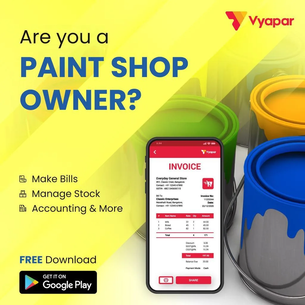 Vyapar एक मोबाइल और डेस्कटॉप आधारित GST Billing, Accounting और Inventory Management App है। इसके जरिए व्यापारी आसानी से GST/Non-GST इनवॉइस बना सकते हैं, बिक्री और खरीद का हिसाब रख सकते हैं और साथ ही अपने कैश फ्लो व बकाया भुगतान को ट्रैक कर सकते हैं।