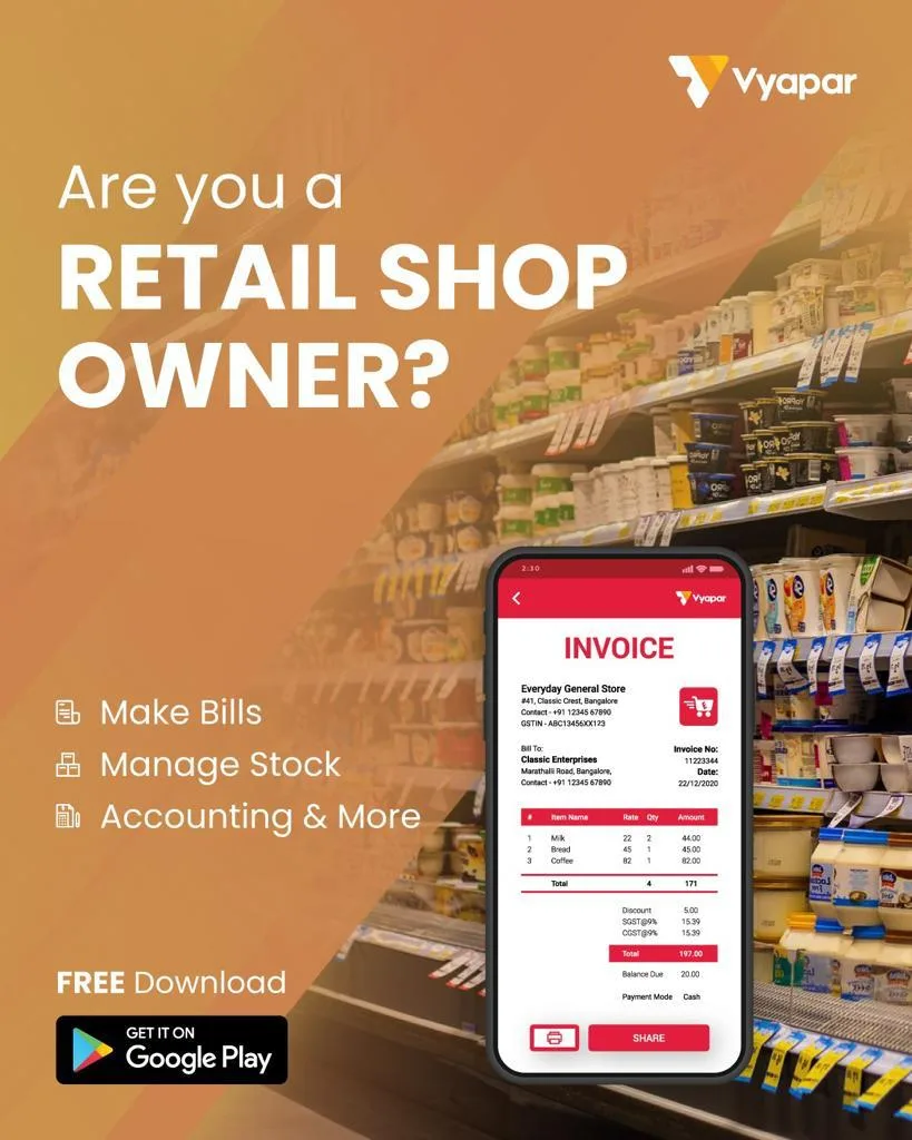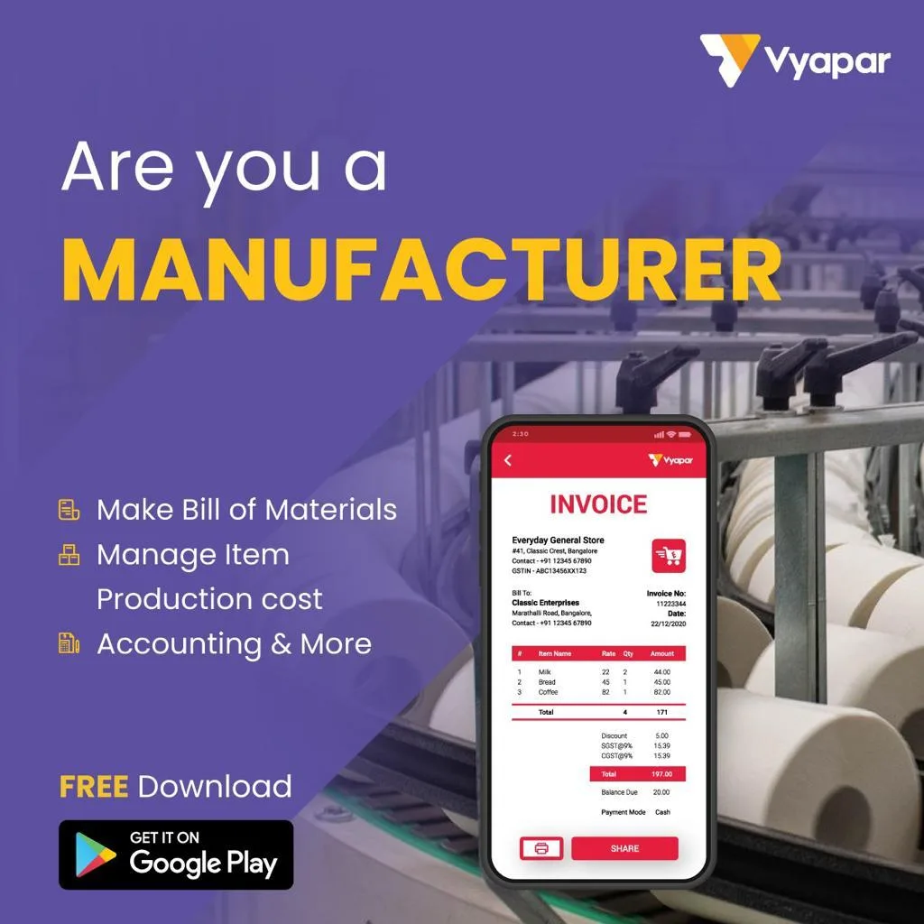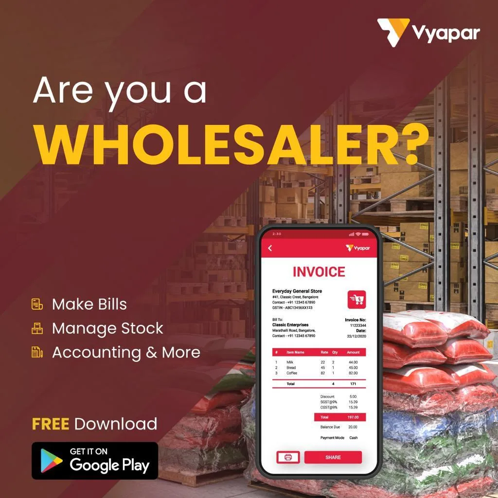 Vyapar అనేది చిన్న, మధ్యస్థ వ్యాపారాల కోసం రూపొందించిన సులభమైన బిల్లింగ్ & అకౌంటింగ్ యాప్.