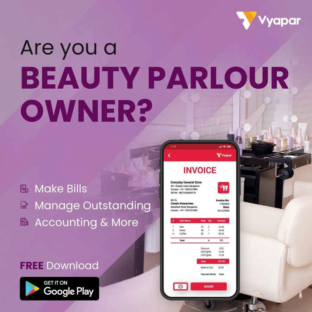2026లో బ్యూటీ పార్లర్ వ్యాపారాన్ని ప్రొఫెషనల్గా, లాభదాయకంగా నడపాలంటే Vyapar Billing Software ఒక బెస్ట్ సొల్యూషన్. చిన్న సలూన్ అయినా, పెద్ద బ్యూటీ పార్లర్ అయినా వ్యాపార్ వాడితే మీ వ్యాపారం సులభంగా ఎదుగుతుంది.